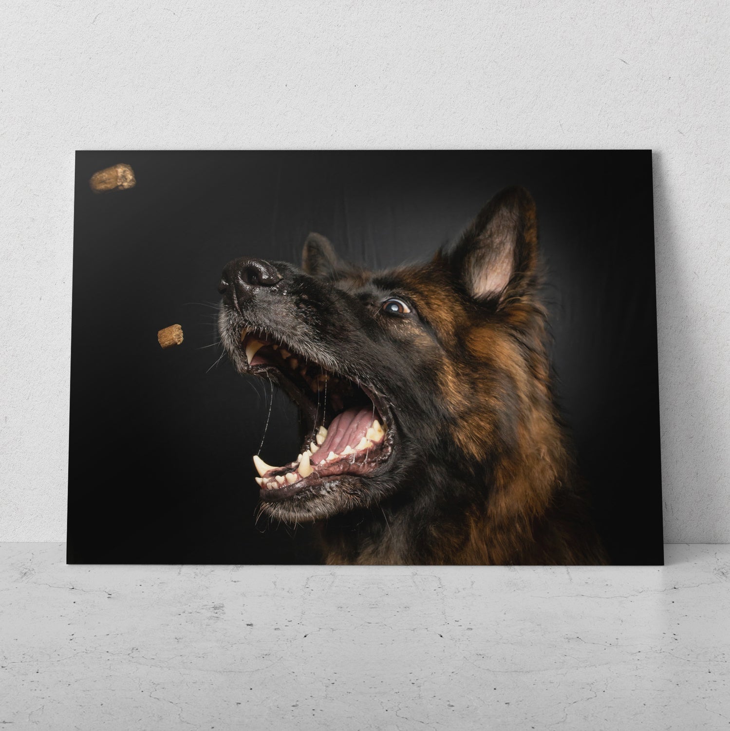 - Los cuadros impresos en papel fotográfico montado sobre MDF están colocados sobre una base de madera.
